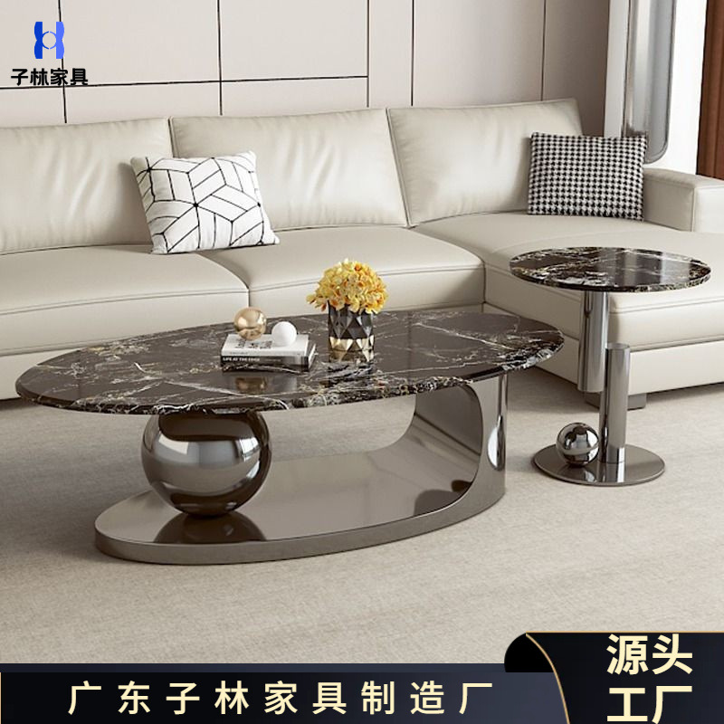 イタリア式の軽い豪華な微晶石の大理石の楕円形のシンプルな大きさの現代の組み合わせの客間の家庭用の小さいタイプのお茶のテーブル