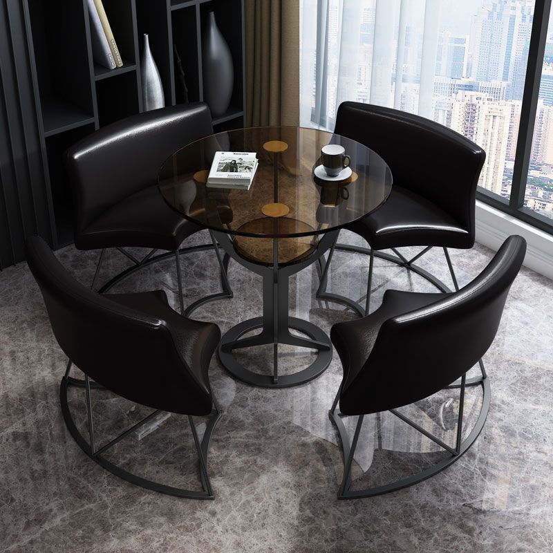 軽量高級強化ガラス受付交渉テーブルと椅子の組み合わせ営業所ビジネス交渉ホームバルコニーレザーアート小さなラウンドテーブル