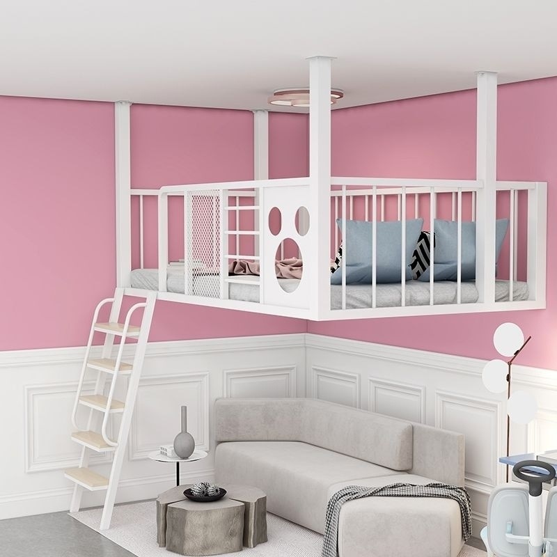 2段ベッド、小さな寮のアパート、ベッドとテーブル、省スペース、2段ベッド、2階の寝室