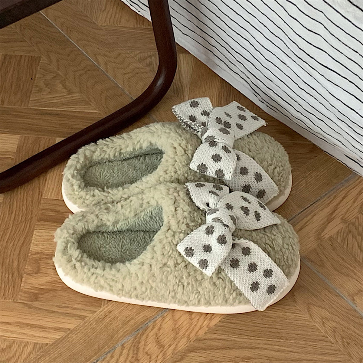 冬の家庭用のかわいいベルベットは、新しい家庭の甘い少女の心の蝶ネクタイの保温月子綿の女性を引っ張る