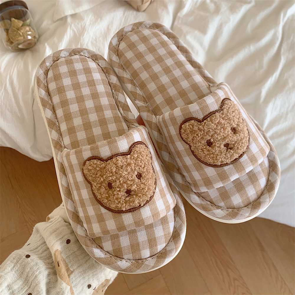 女性の新型の柔らかい底のスリッパのかわいい格子の熊の春と秋の夏は糞を踏んで感じます。