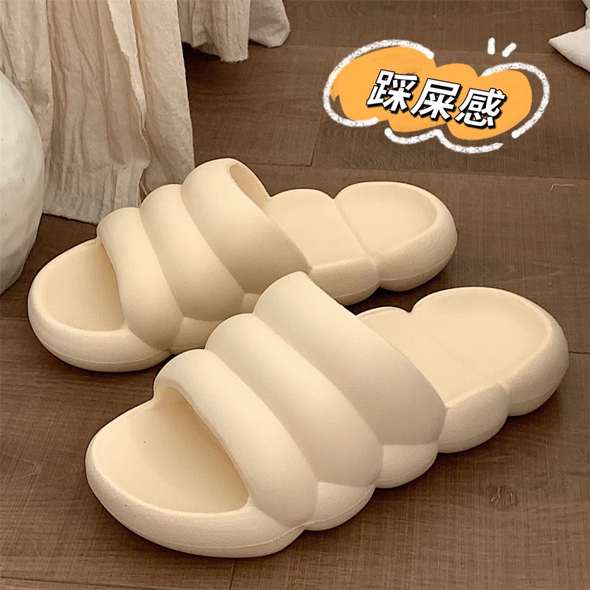 個性的でシンプルな家で糞感を踏むサンダル女性夏ファッションカップルは滑り止めeva底スリッパ9005mmcを着ている