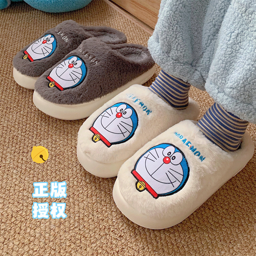 秋冬のぬいぐるみかわいいドラえもん産後月子靴ファッションカジュアル新型保温包頭綿スリッパ女