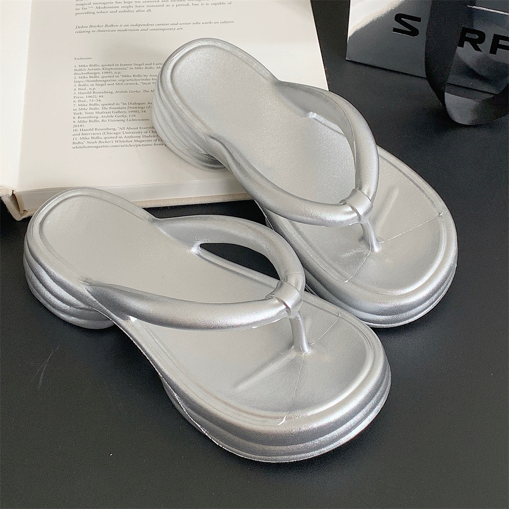 夏は糞を踏んで感じます。外はシンプルなリゾートビーチのスリッパを着ています。