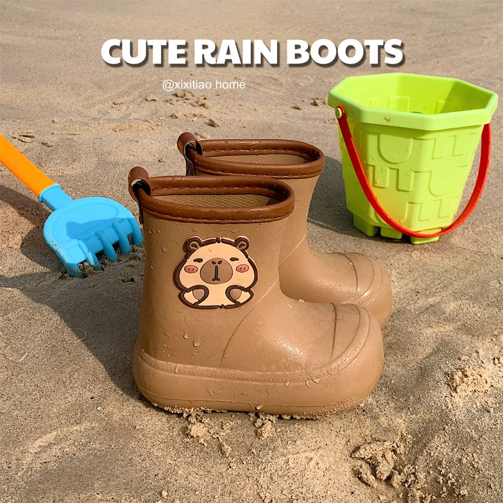 かわいい趣味のカピバラ水豚ゴム靴ins雨靴女性は快適防水個性高級雨靴を履いている