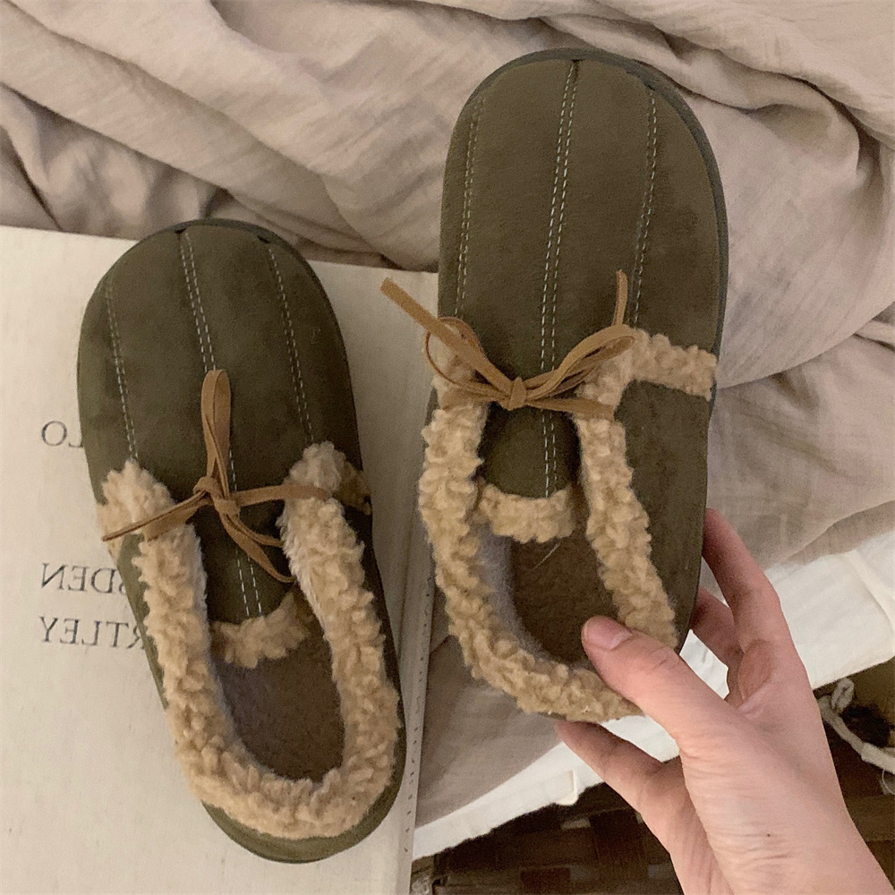 高级感レオパード蝶結びウールスリッパネットレッドins潮外着ファッション冬二字コットンスリッパレディース