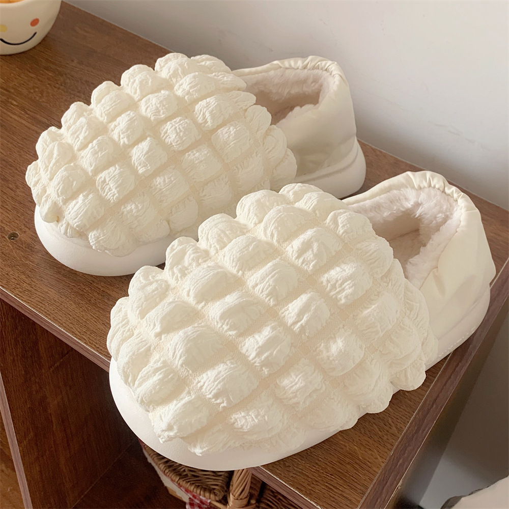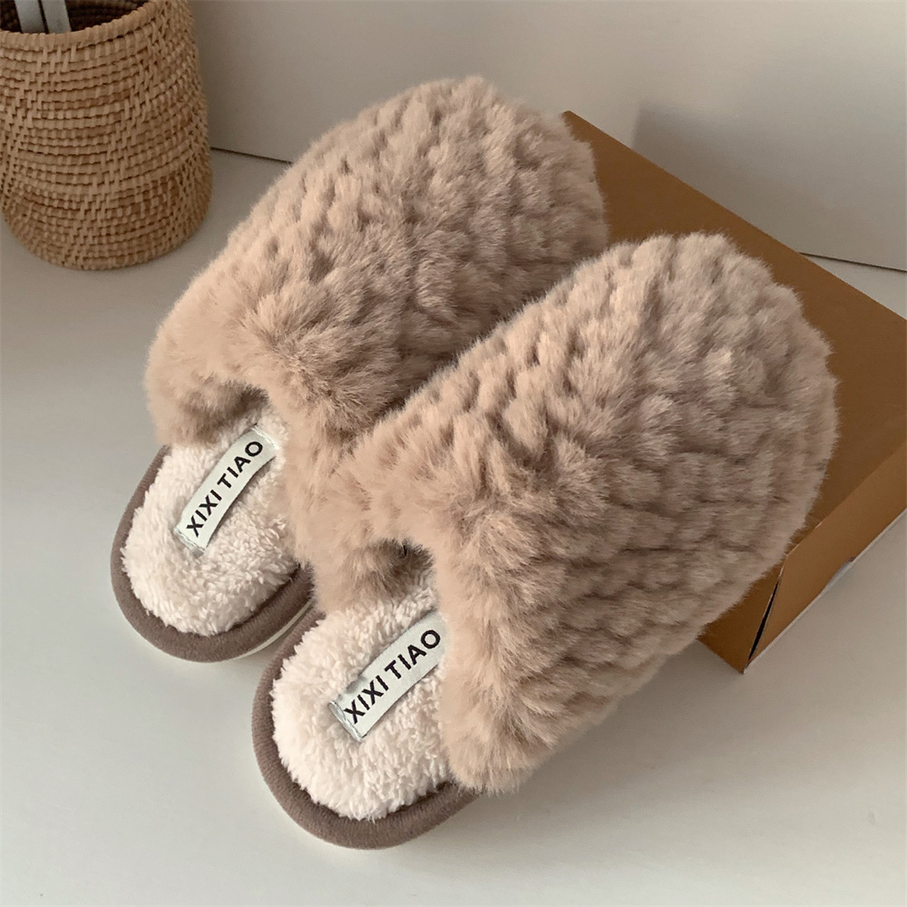 シンプルな純色保温格子全包と綿スリッパ女性冬ファッション家庭室内軟厚底月子スリッパ
