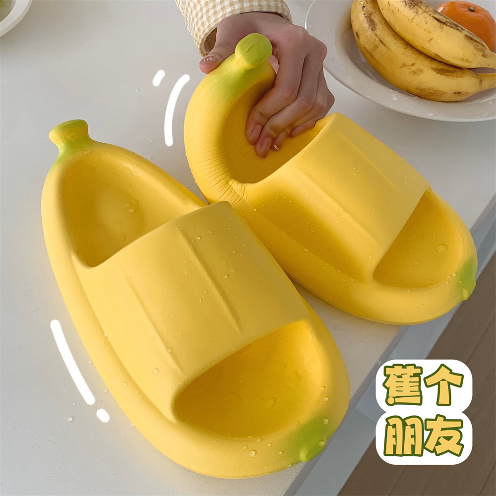 家の室内のevaの厚い底は糞感の1字の冷たいスリッパの個性のアイデアのバナナの夏のレジャーの女性のスリッパを踏みます。