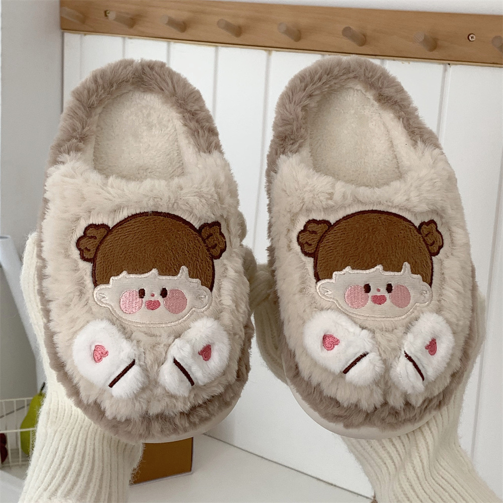 女性の冬のかわいいアニメの小さい手袋の包頭の綿のスリッパの少女の心のレジャーの家庭の保温の柔らかい底の月子のスリッパ