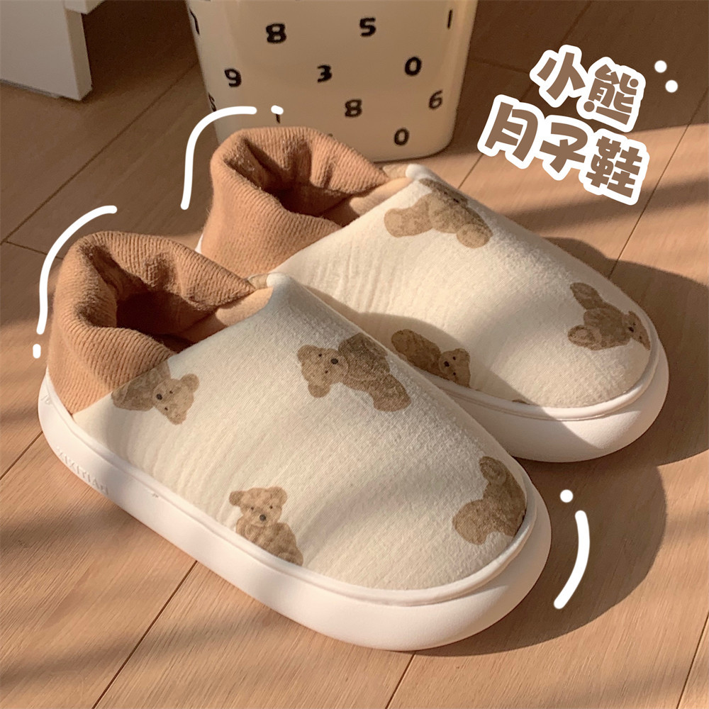 糞感を踏んで家の綿のスリッパの春と秋のかわいい熊のウサギは全部包んで薄いタイプの産後の柔らかい底の月子の靴の女性を包みます。