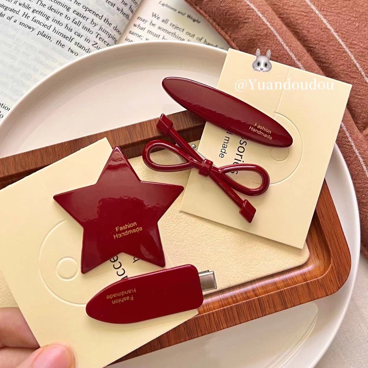 アンゴラの赤い楕円KTヘアピンins韓国系シンプルな質感前髪サイドクリップ