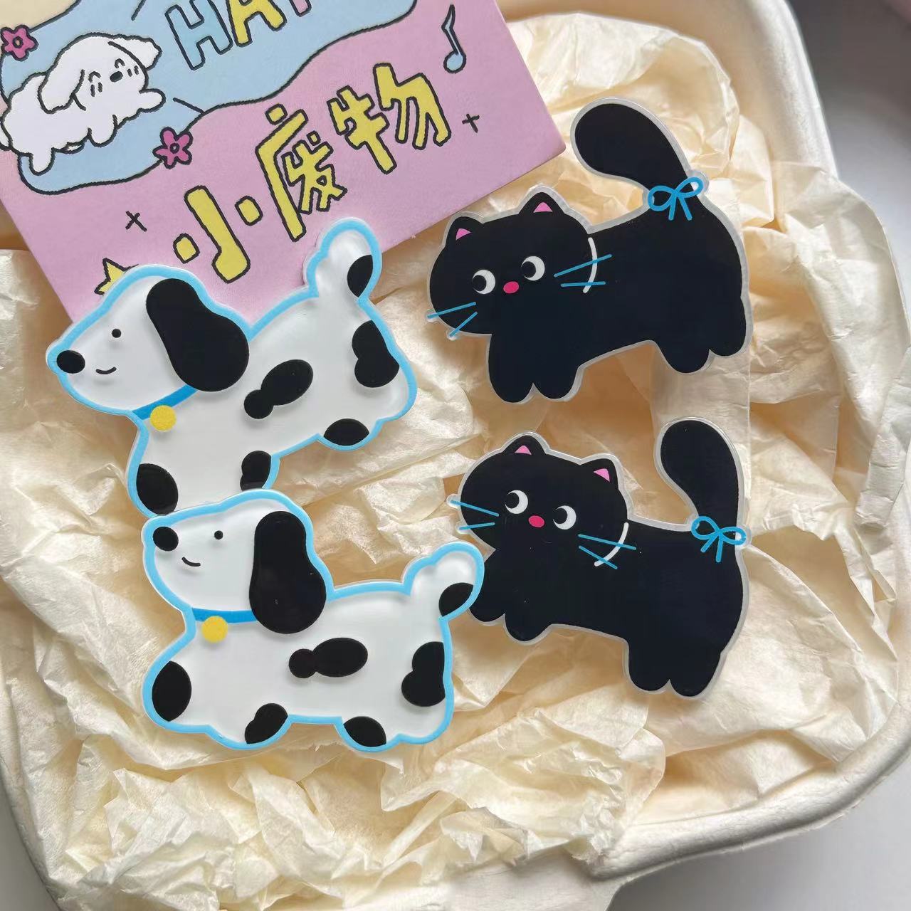 かわいい少女の心の白黒の子猫の子犬のアクリルのヘアピンの漫画の前髪はサイドのヘアピンを挟みます。
