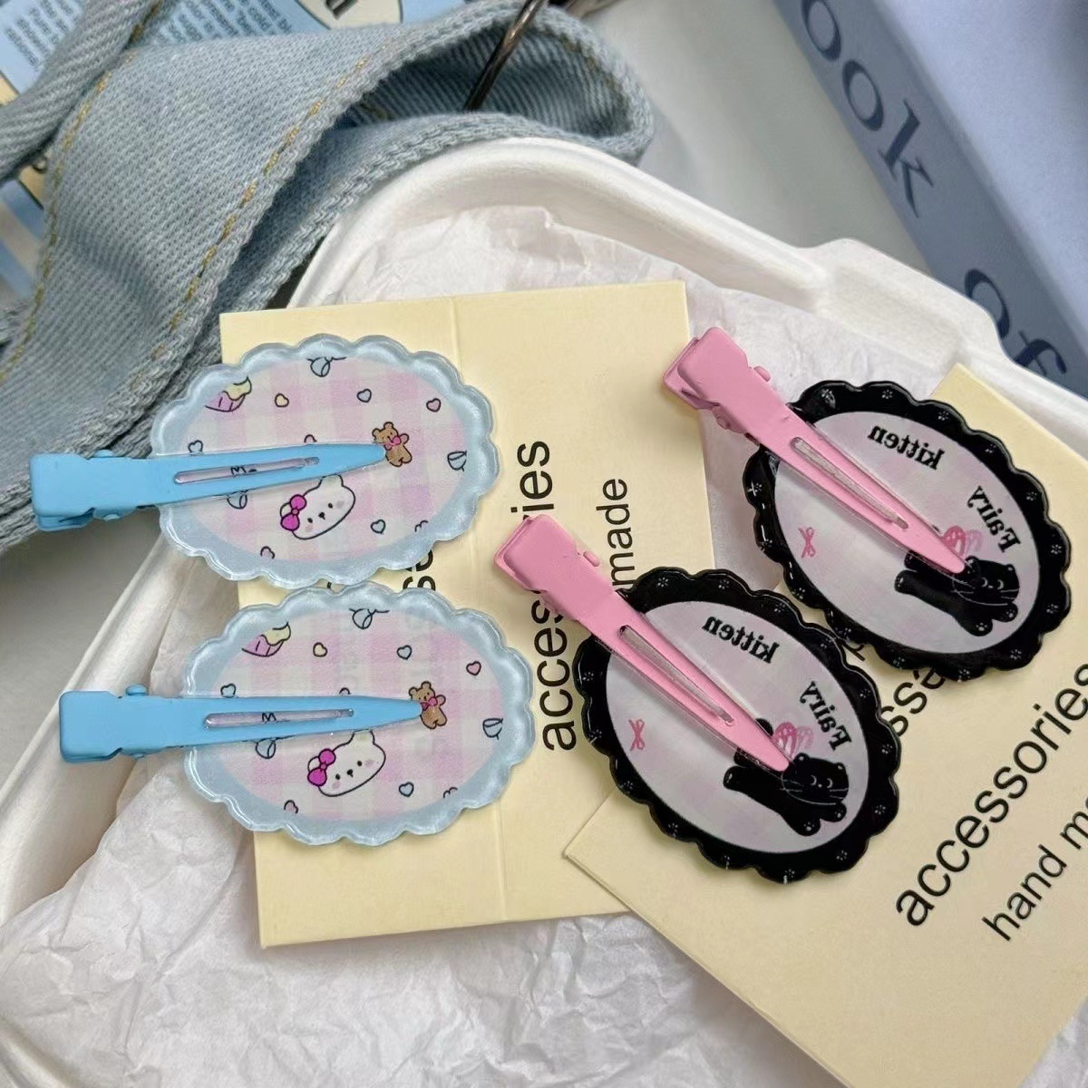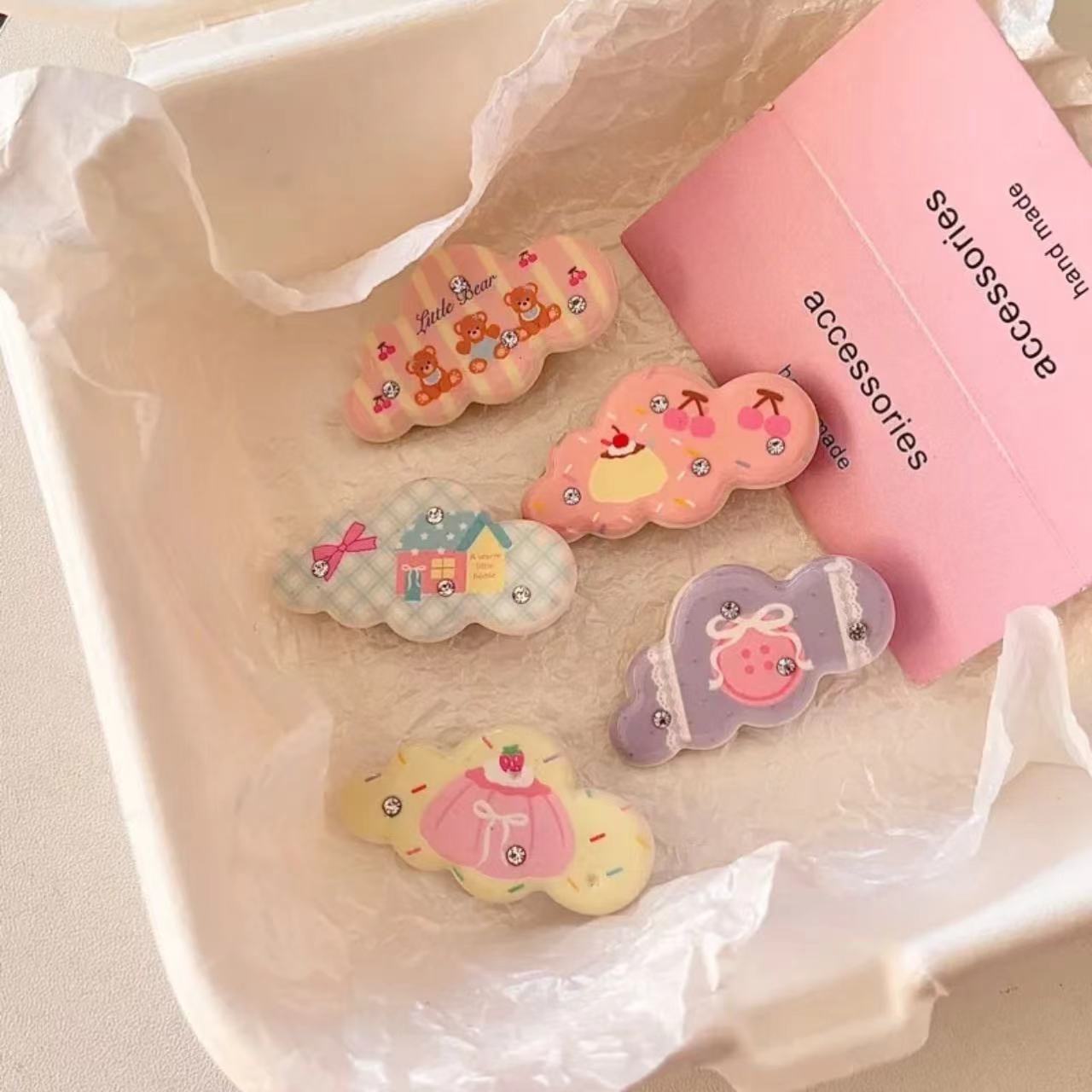 かわいい点ドリルの熊の雲のアヒルの口は日韓insの少女の心の側を挟んでカードを出します。