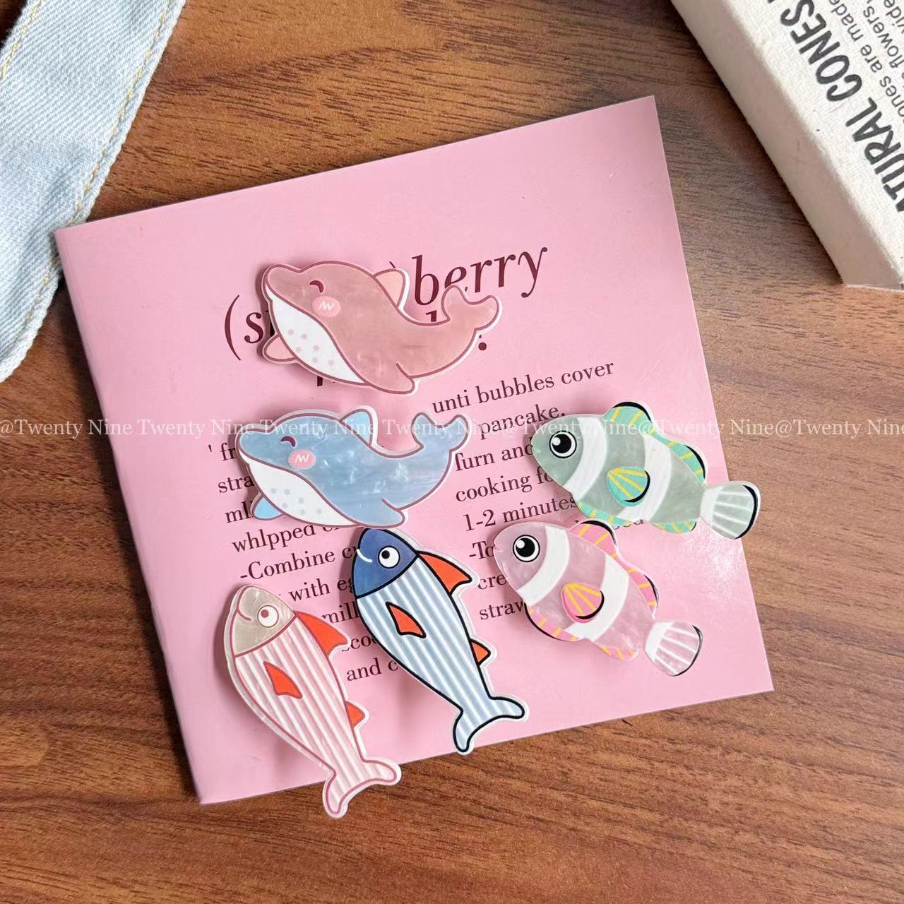 ネットの赤いかわいい小さい魚の辺は日韓の趣味の少女の側の髪を挟んで前髪を砕きます。