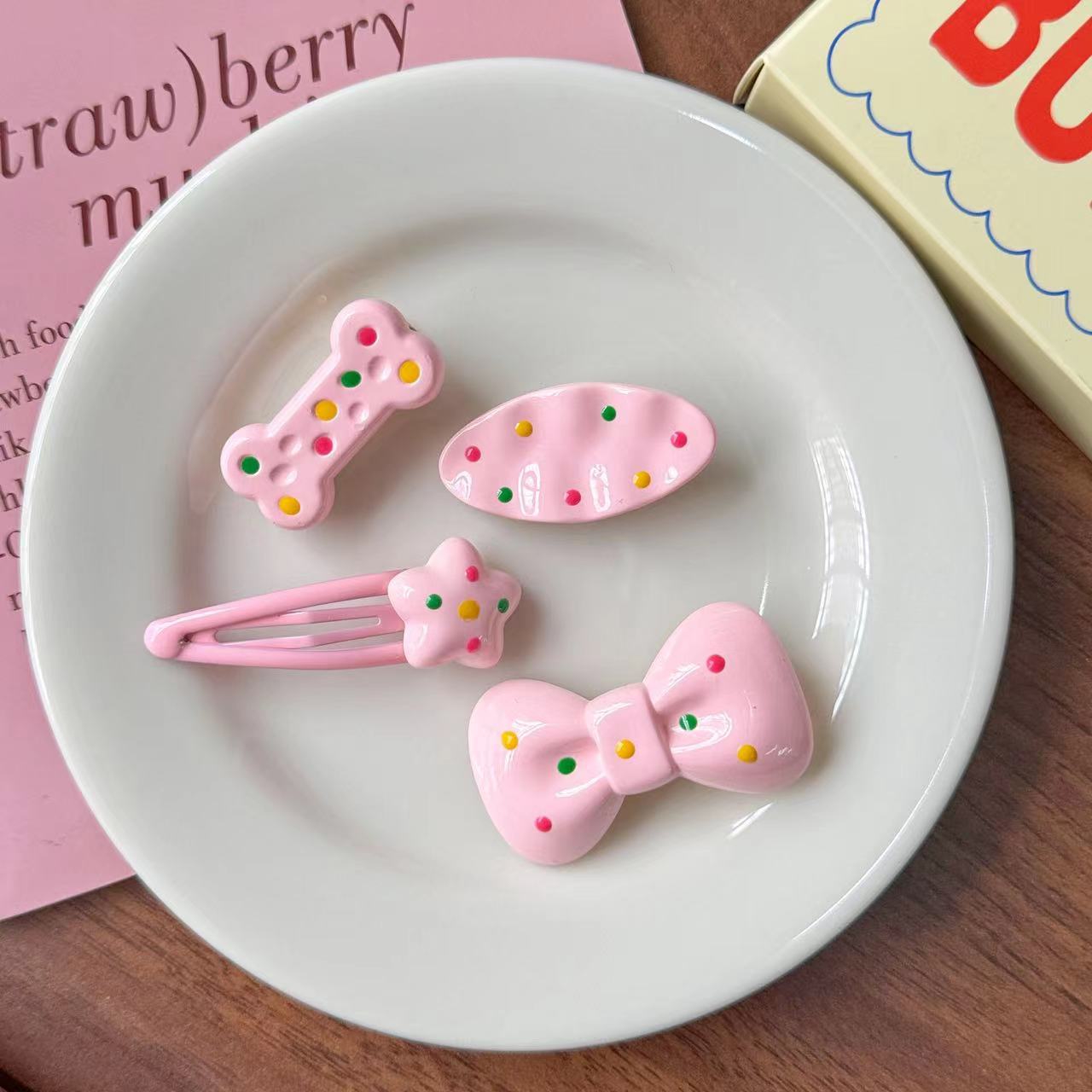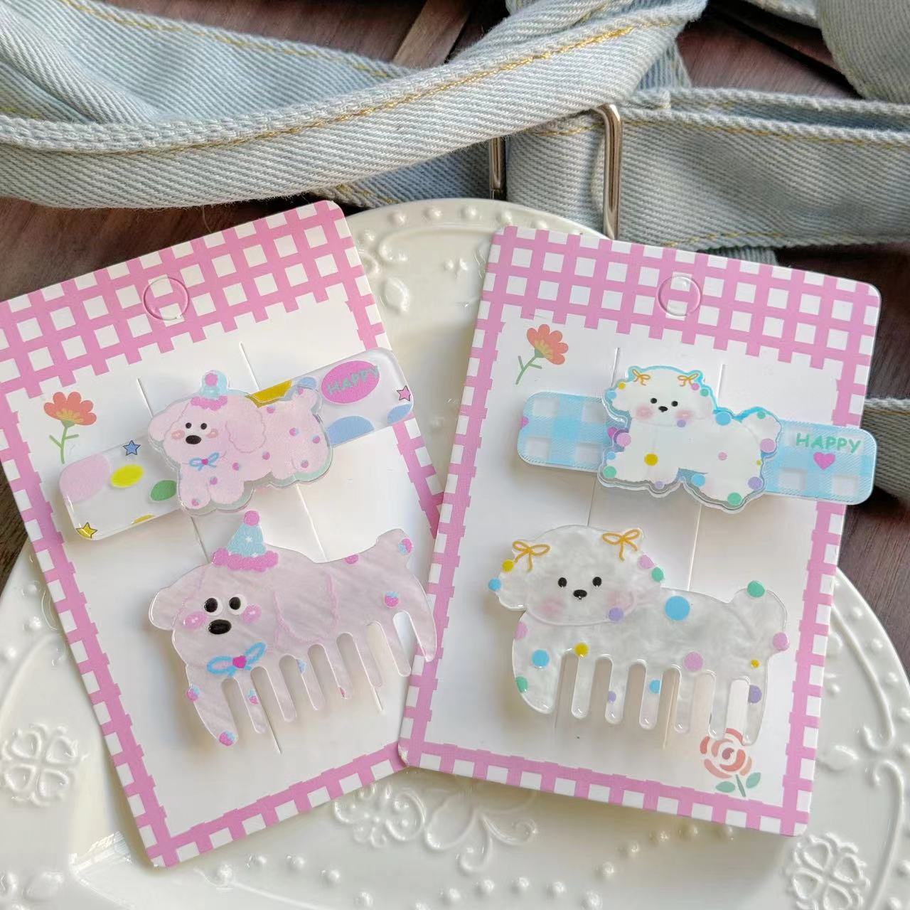かわいい少女の漫画のヘアピンの組み合わせの趣味の波点の子犬の櫛のヘアピンの前髪はアヒルの口の挟みのサイドクリップを挟みます。