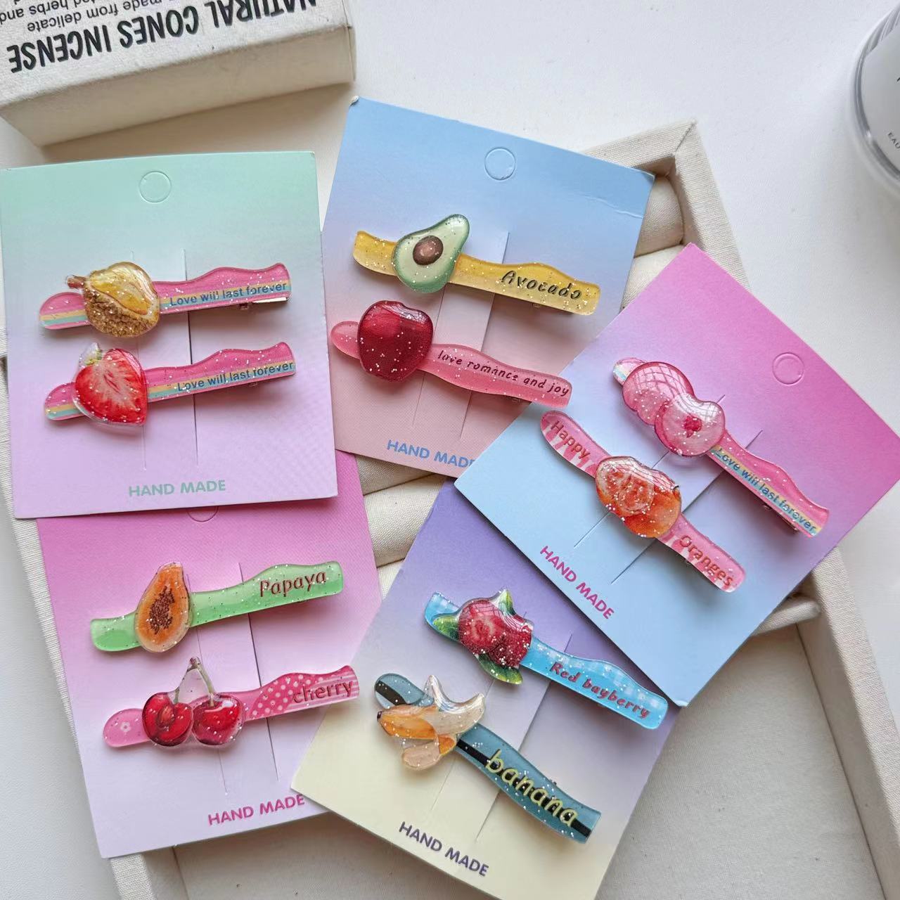 2個入りキラキラ粉果物ヘアピンさくらんぼいちご前髪クリップ少女心百合アクリルアヒル口クリップ