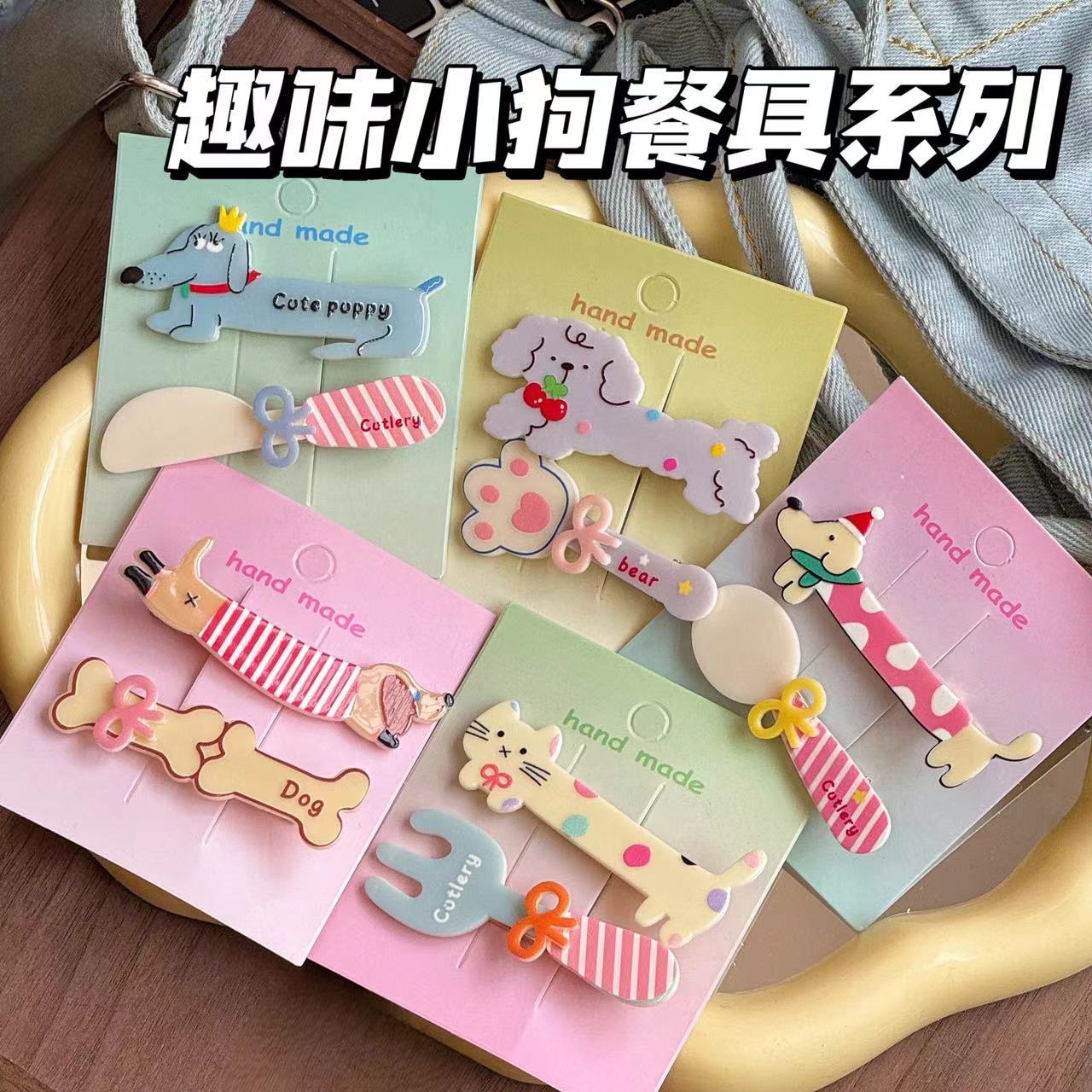 2つの服のかわいい漫画の子犬の食器のヘアピンの前の額の側は髪を砕きます。