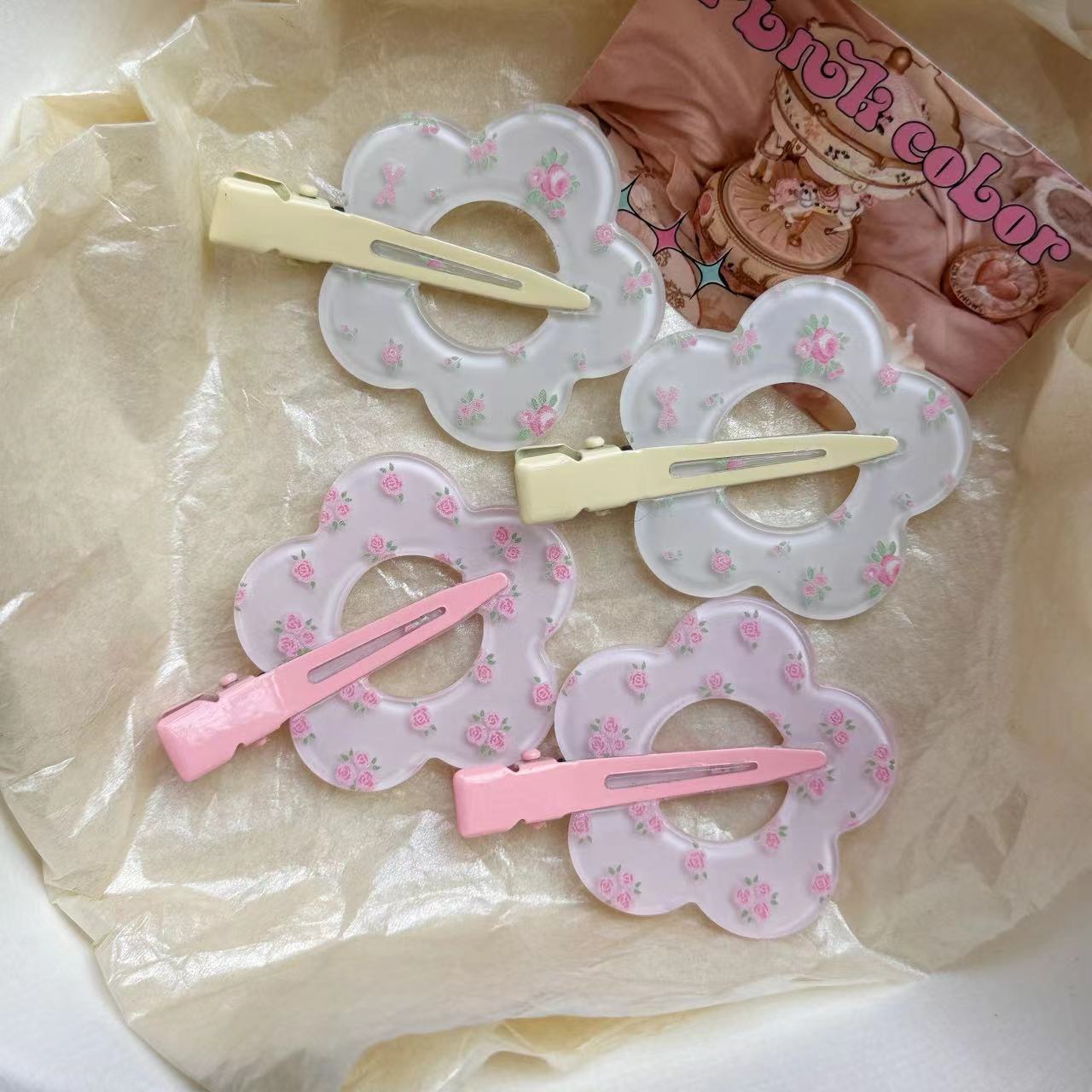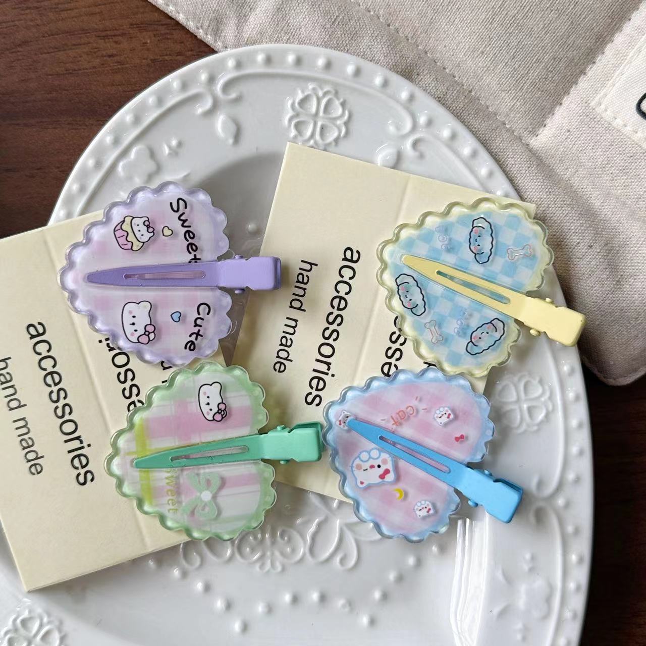 透明格子紋愛レースキャンディヘアクリップ甘い少女心カモ口クリップ髪前髪クリップ髪アクセサリー春