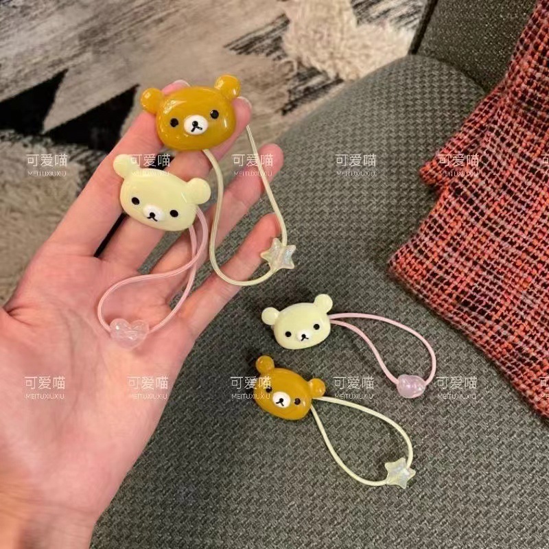 超かわいいリラックマの髪ひも熊兄熊妹の髪ひも少女心双馬尾皮筋弾力髪輪髪飾り女