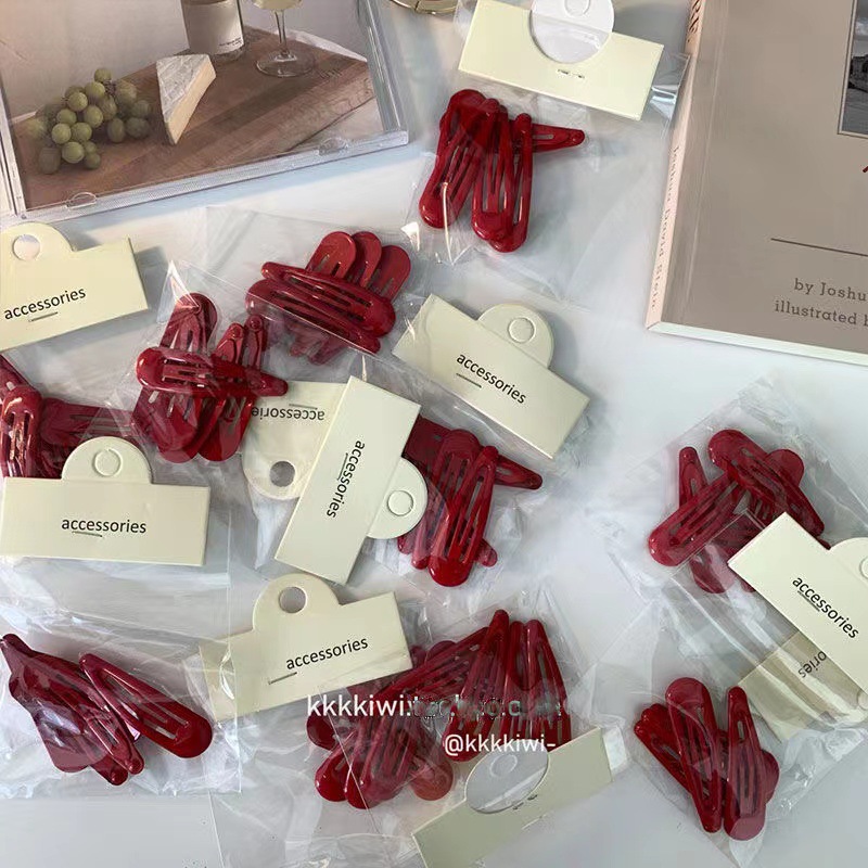 秋の少女 ~ レトロ赤bbクリップ! クリスマス新年雰囲気感超白サイドminiキャンディー色ヘアクリップ