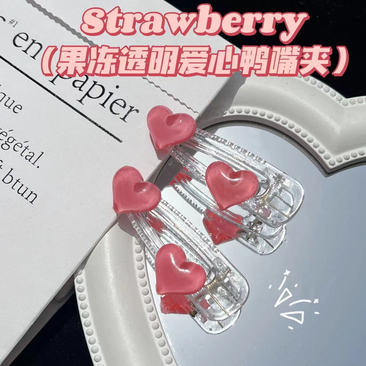 ゼリー愛透明アヒル口クリップins少女心甘い桃心縁クリップ夏シンプル学生髪飾りクリップ