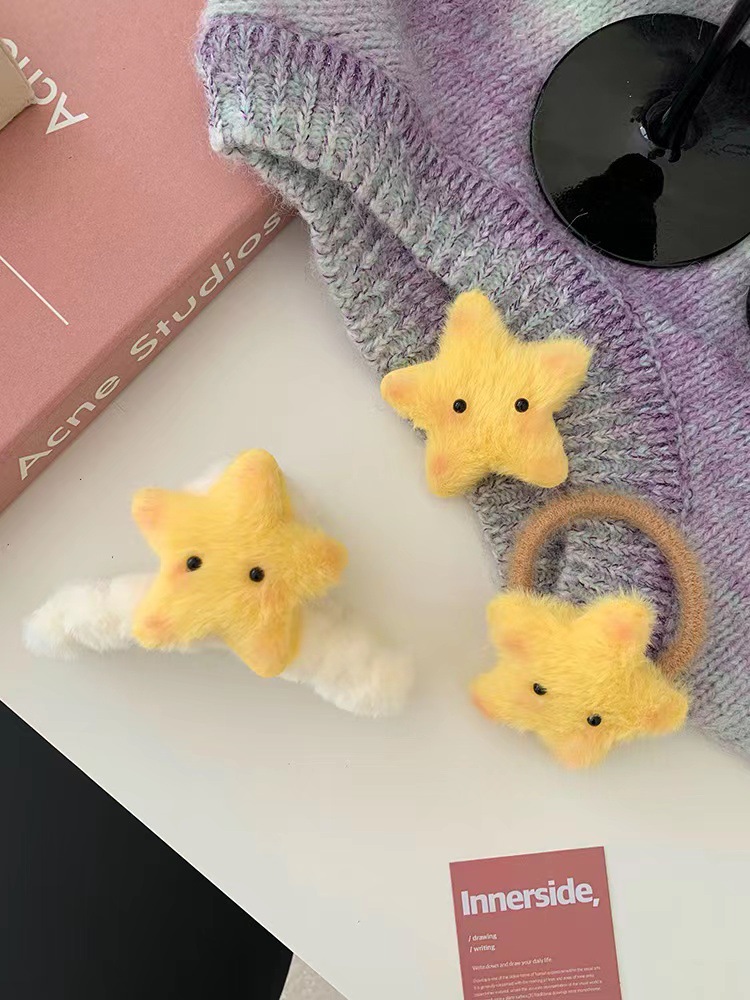 毛のふわふわした星のヘアピンが可愛いです。
