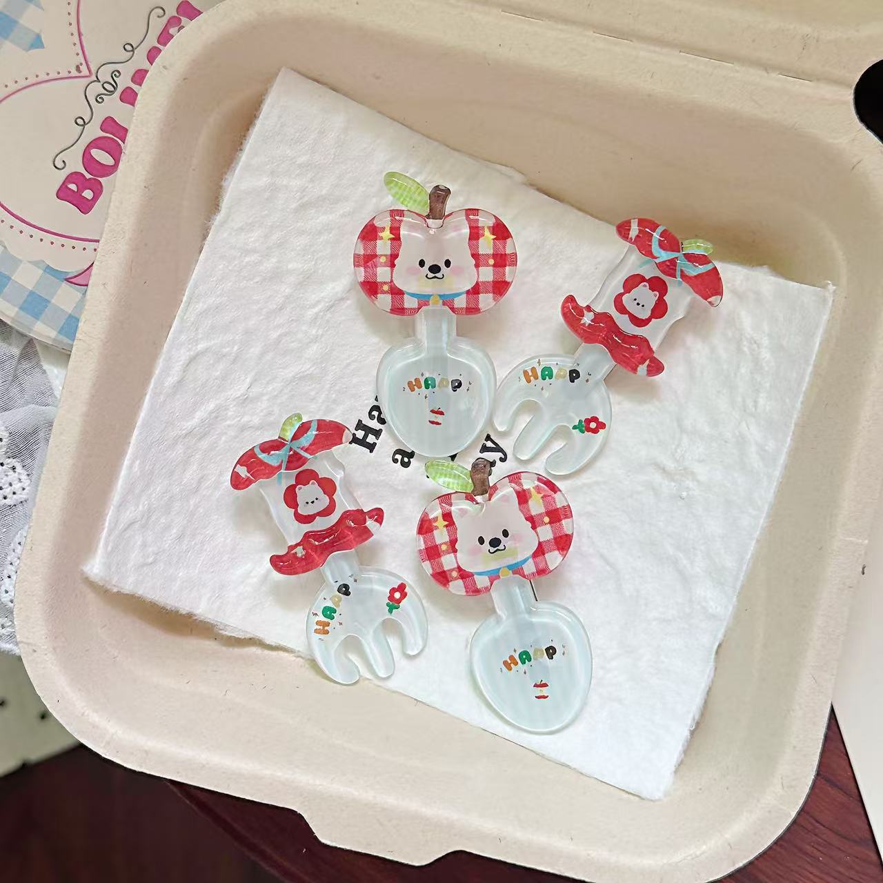 かわいいクリアアップルスプーンフォークヘアピン漫画ウエストハイランドガールサイド前髪クリップ日本と韓国の多用途ヘアピン