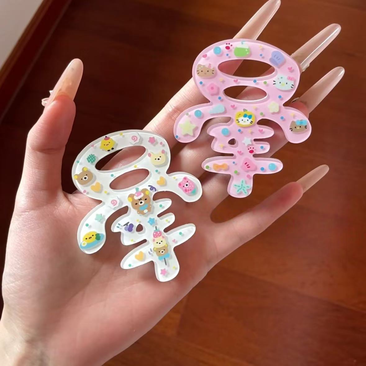 かわいい古早軽松熊小掴み高颜値漫画熊アクリル立体ミニクリップ甘い妹髪飾り