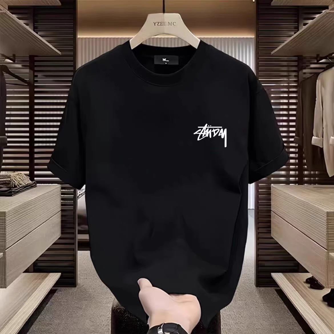 MAROLIOはハンサムでスタイリッシュ〜厚手の半袖Tシャツメンズ夏イントレンディブランドルーズラウンドネックトップ