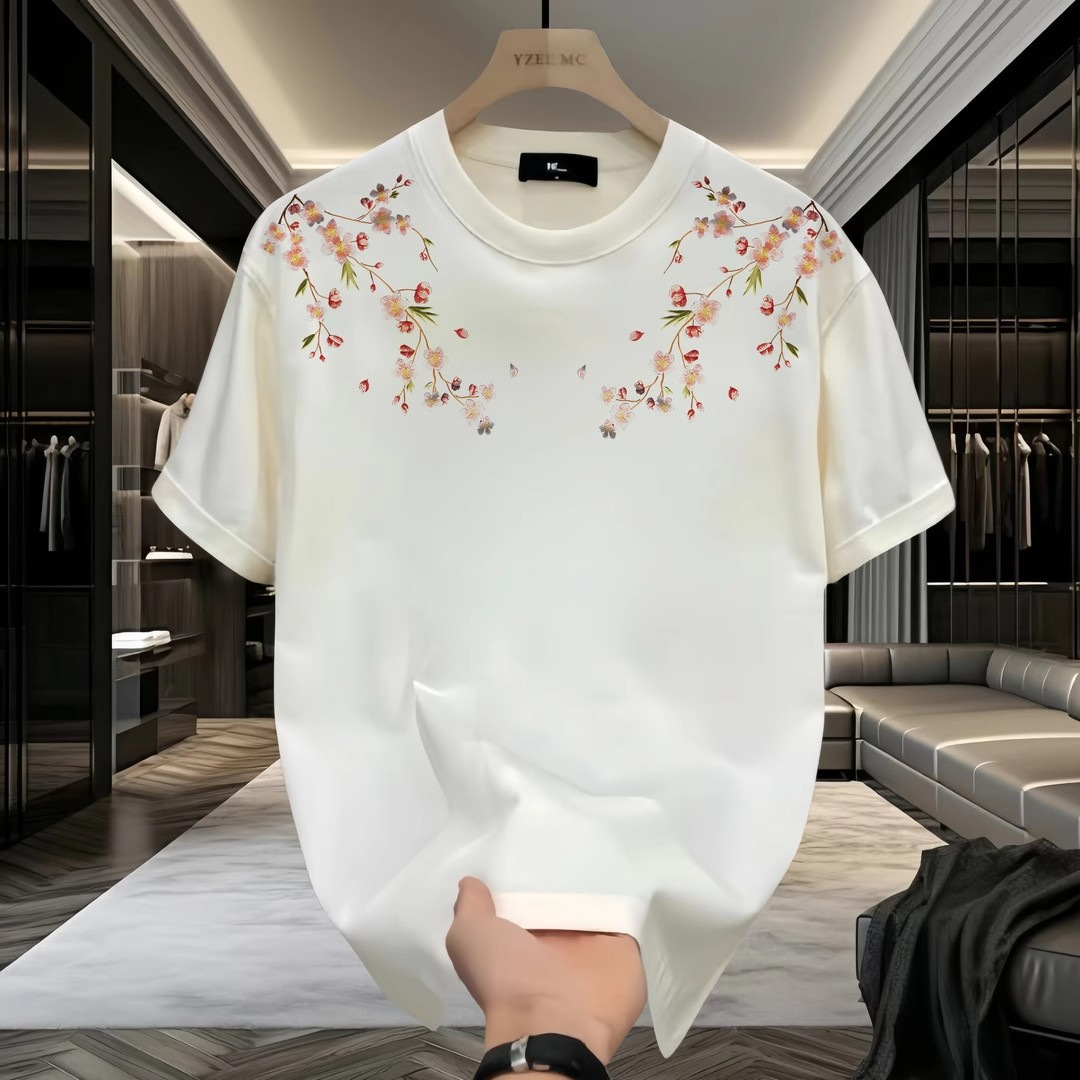 【ブランド精選】高級メンズ重ポンド双紗100% メンズプリント半袖tシャツ