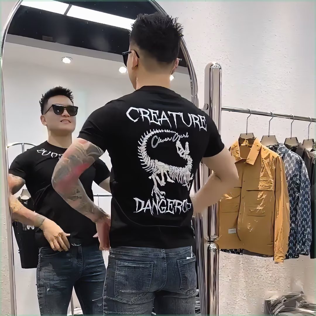 夏のメンズラウンドネック半袖 Tシャツトレンディなファッションスカルプリントスリムフィット多用途半袖メンズトップ