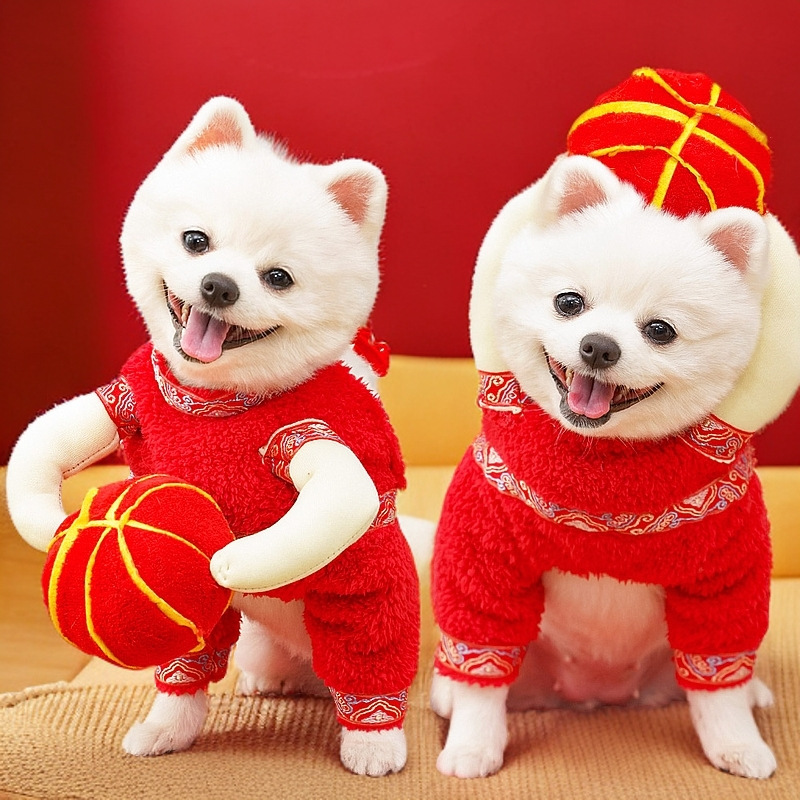 新年ランタンお祝いペット犬猫秋と冬の犬服猫服用品面白いプラスベルベットコーギーフレンチブルドッグ