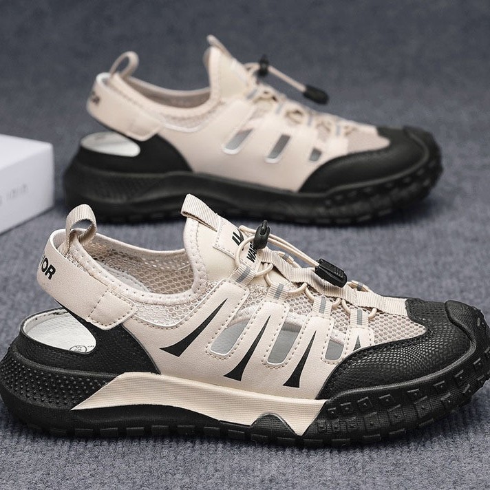 メンズシューズ 2025 夏の新スタイル中空下駄通気性と多用途のメンズサンダル弾性バンドスポーツウェーディングシューズ
