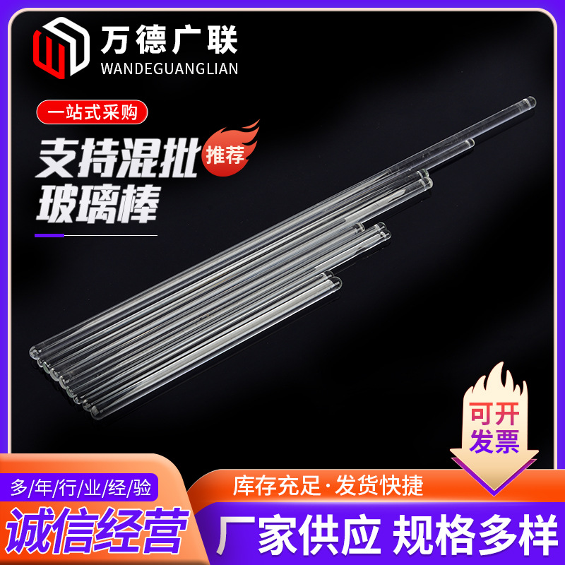 ガラス棒 20cm 滑らかな丸頭 ソリッドガラス棒 撹拌棒 カスタム高温高硼珪酸ガラス実験室用ガラス棒