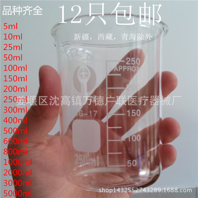 ガラスビーカーガラス計量カップビーカー5ml 25ml 50ml 100ml 150ml 250ml 500ml