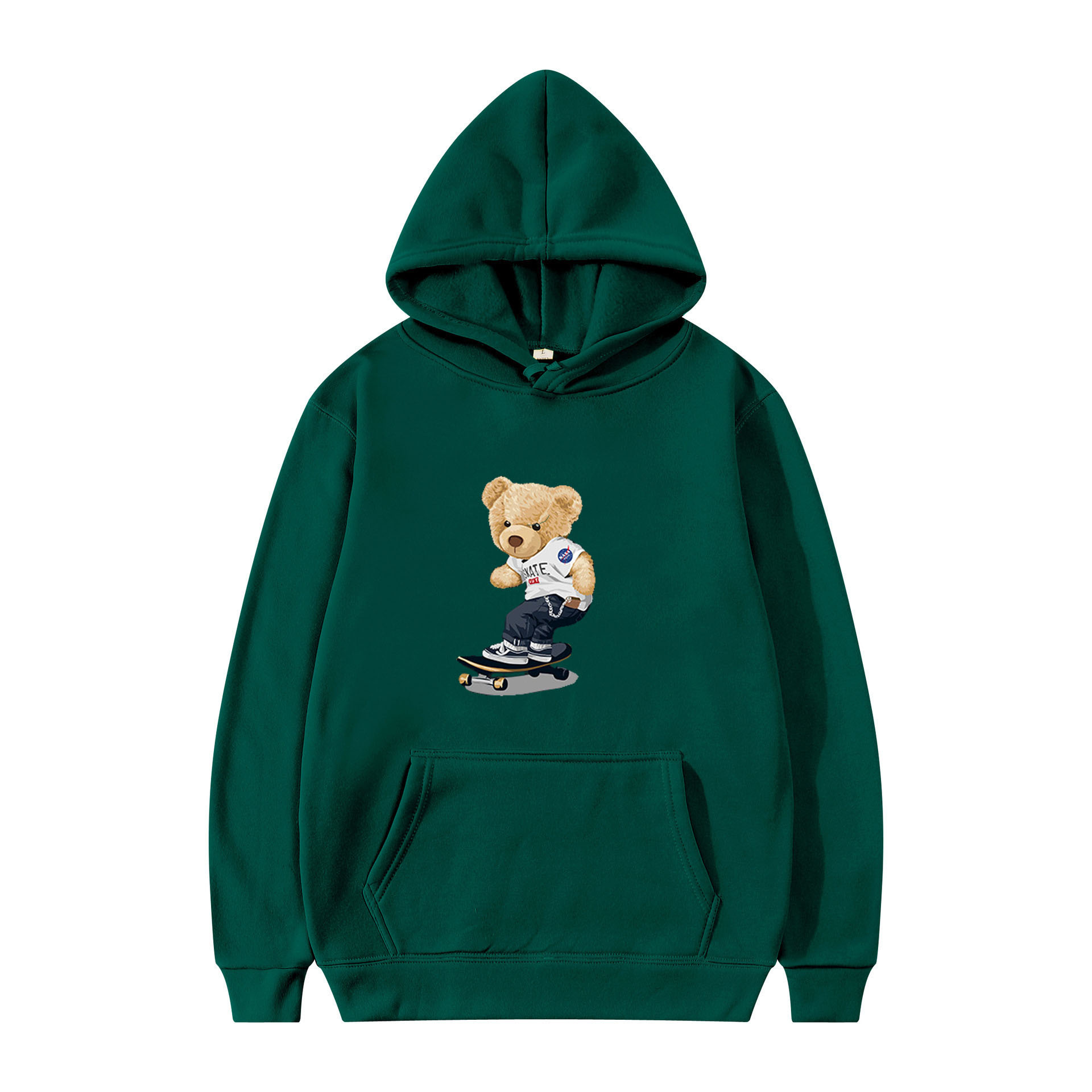 メンズスウェットシャツ 秋冬 高級感 トレンドブランド 冬用スウェットシャツ クマ柄 スポーツカジュアル フード付きプリントジャケット 多用途