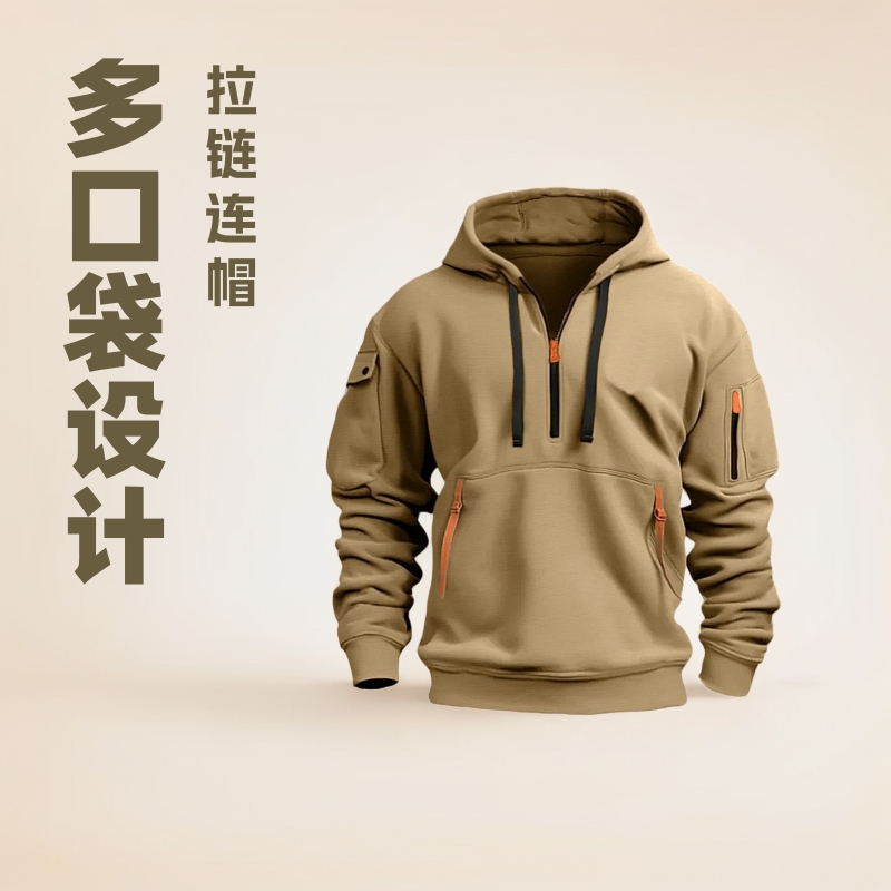 秋冬男性レジャースポーツ多ファスナー腕ポケットパーカーパーカーパーカー