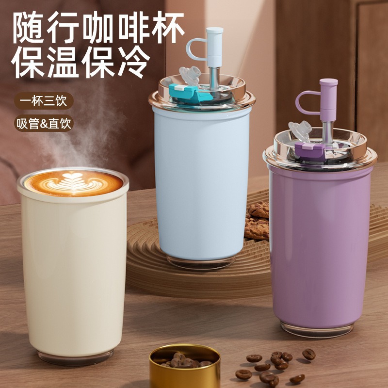 新款316不锈钢双层保温杯女高颜值双饮咖啡杯户外随行保冷水杯
