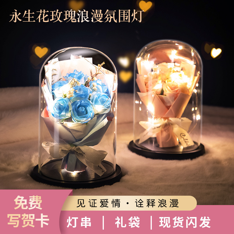 520 ガールフレンドへのバレンタインデーギフト、プリザーブドフラワー、ガラスカバー、ナイトライト、女の子の親友への誕生日プレゼント、高級感
