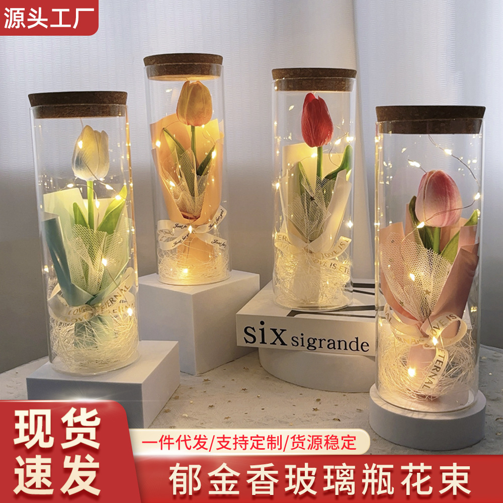 チューリップ母の日花束インターネット有名人の夜の光永遠の花の雰囲気装飾装飾品創造的で絶妙な誕生日プレゼント