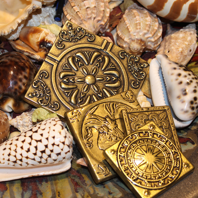 北欧金属彫刻レンガタイルタイル角花真鍮角花片彫刻レンガ玄関壁面小花レンガ