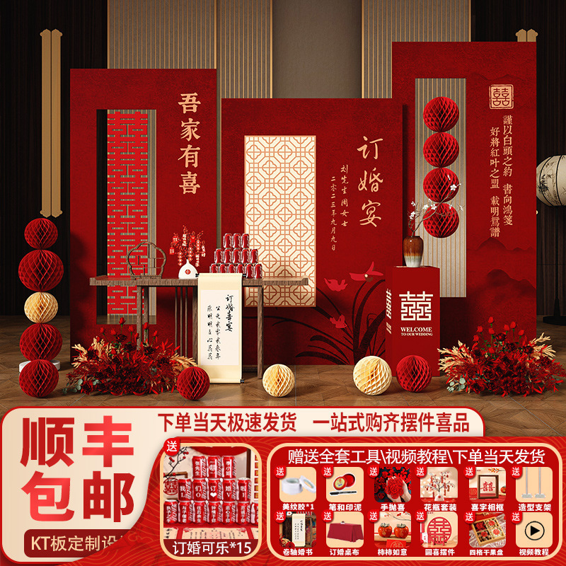 新中国式婚約披露宴配置装飾2023セット小置物セットシンプル高級感kt板背景壁