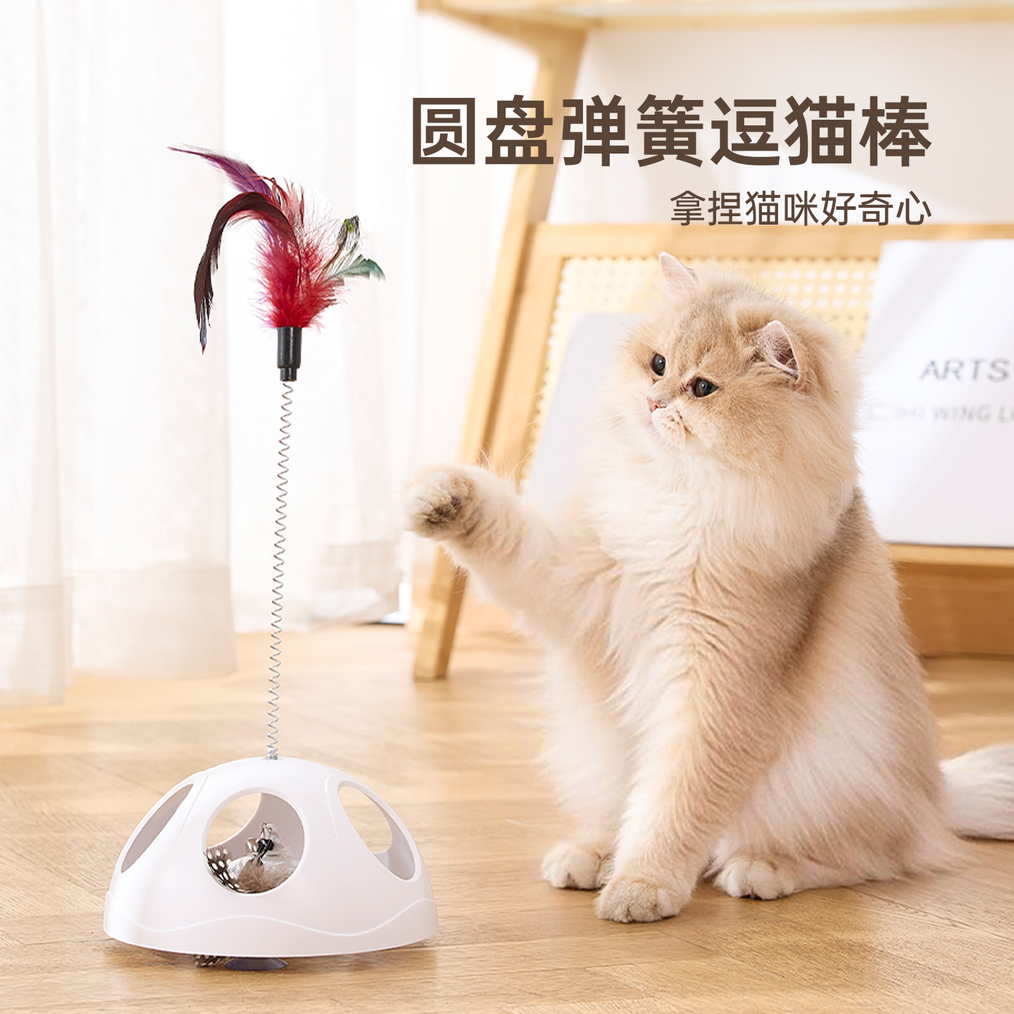 猫のおもちゃ、猫を楽しませるスティック、吸盤付きで退屈を和らげる、猫を楽しませるスプリング、噛みつきにくい猫用の魔法の道具、羽根付きのペット用猫用品
