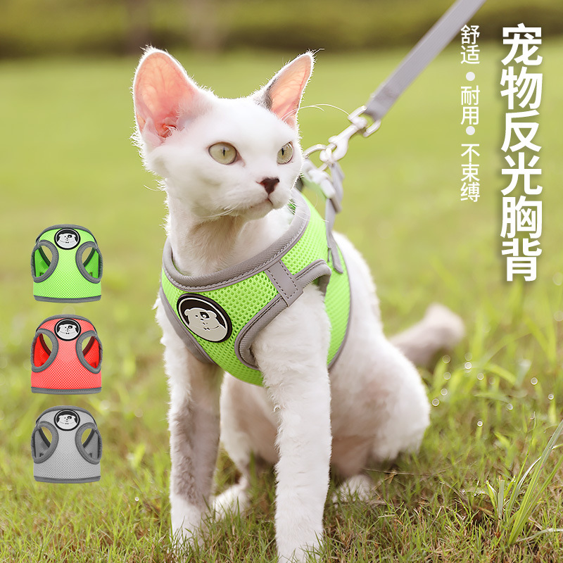 ペット反射牽引ロープ胸ストラップベスト式防脱通気舒爽猫牽引ロープ犬チェーン卸売り