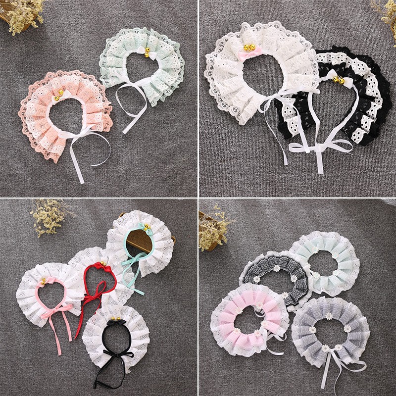 メーカー直販日本和風猫首輪犬猫ペット首輪レースの縁に鈴の首輪がついています。