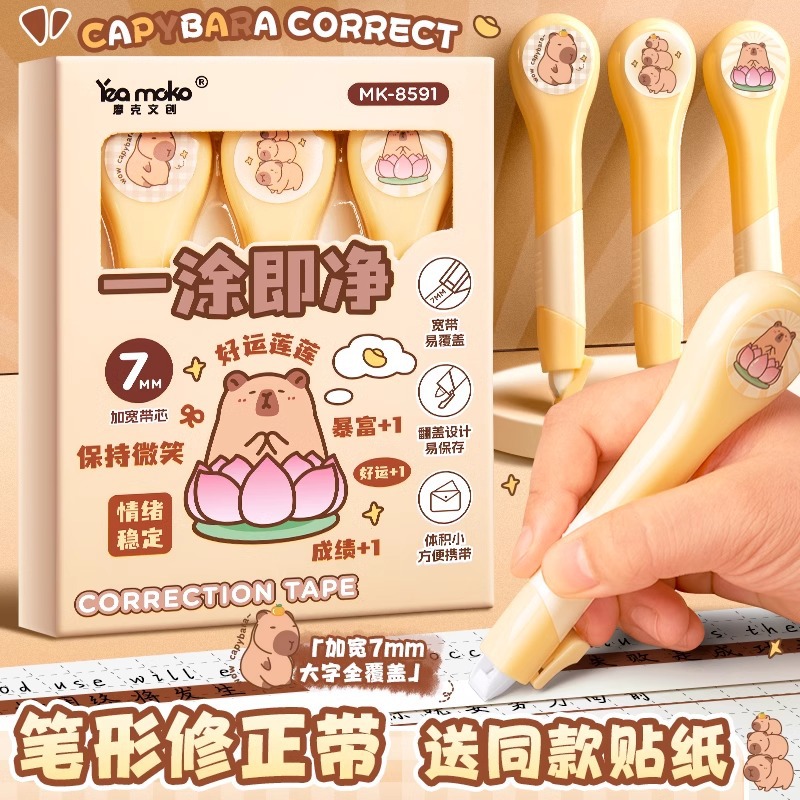カピバラペン式修正帯小学生専用交換可芯創意塗り替え帯ペン形修正帯