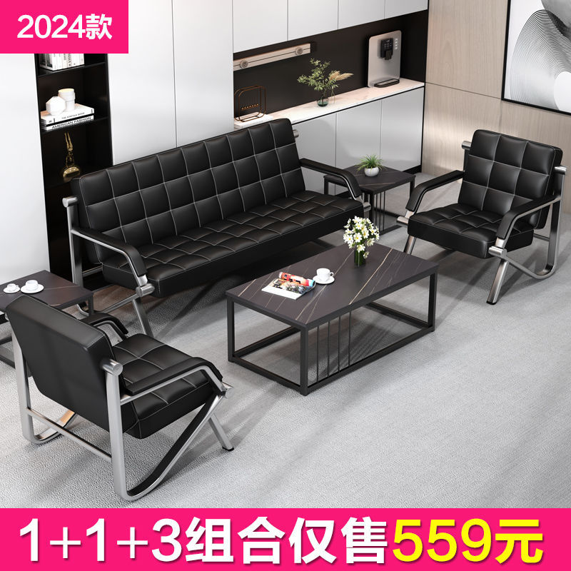 本革オフィスソファ シンプル モダン ビジネス レセプション レジャー 3人掛け コーヒーテーブル 組み合わせセット レザーアート