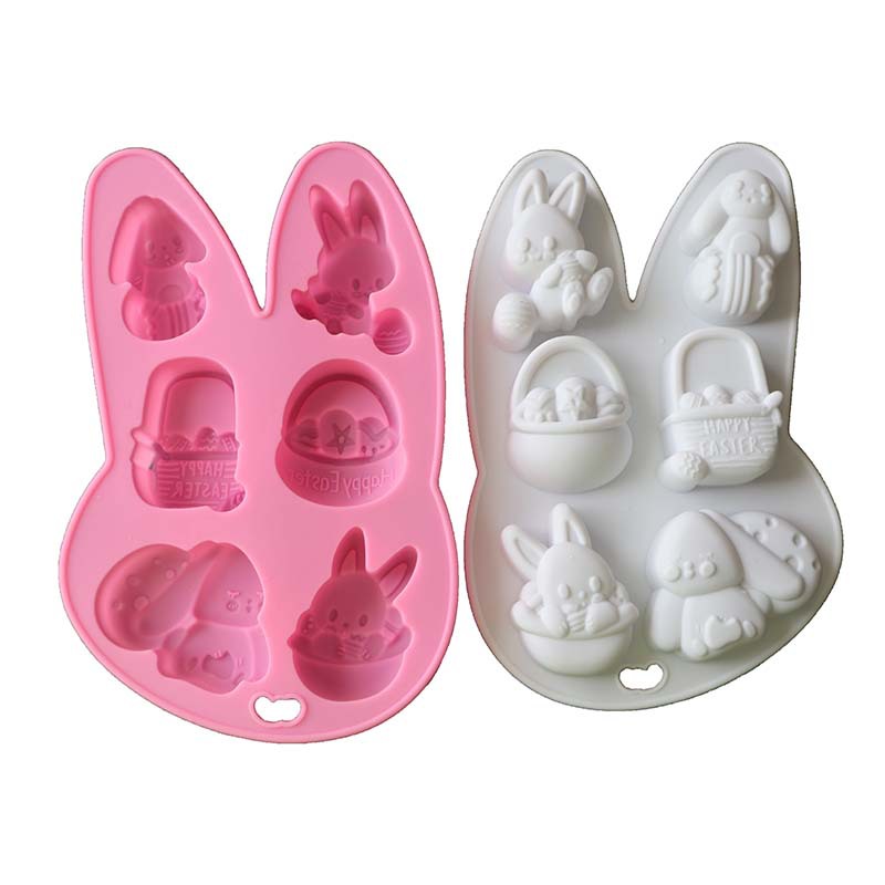 現物卸売りウサギ耳6連シリカゲルケーキ型白兎彩卵礼籠イースター型手作り石けん