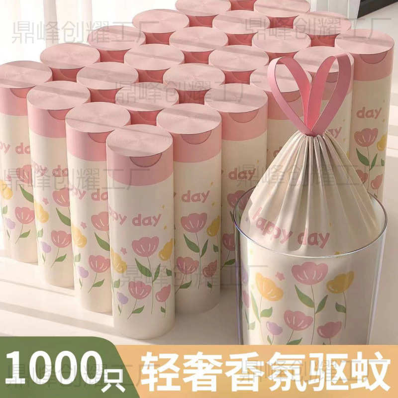 ゴミ袋 かわいい 家庭用 厚手 特大 手持ちクリーニングバッグ トイレ衛生袋 巾着タイプ 極厚
