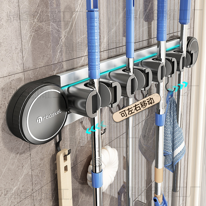 Youqin 吸盤モップ壁掛けクリップパンチフリーフック浴室バスルーム収納固定ラックほうき収納ラック